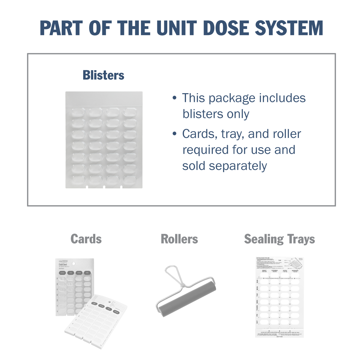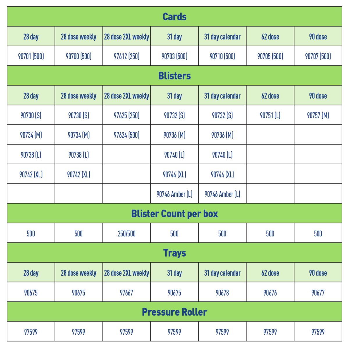 - 28-Day Cold Seal Blisters to be used with 28-Day Cards (90701 or 90700) and the 31-Dose Sealing Tray (90675)